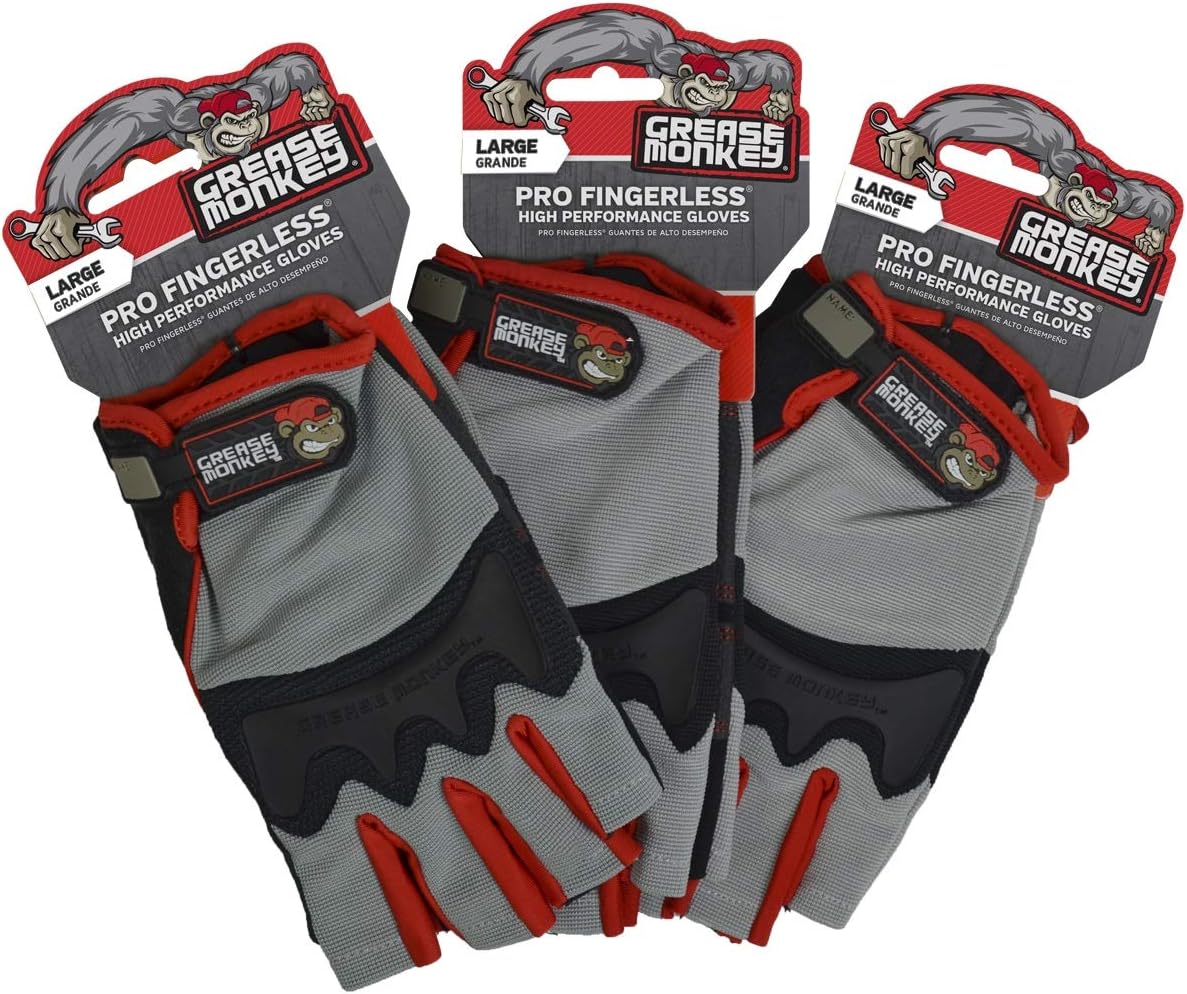 Tackle any task with superior grip and fingertip freedom using the GREASE MONKEY 22107-23 Pro Fingerless All-Purpose Work Gloves. This practical 3-pack delivers exceptional value and versatility for demanding professionals and dedicated fitness enthusiasts alike. Engineered for performance, these gloves feature a durable, breathable nylon and spandex construction that provides a secure, comfortable fit without restricting movement. The key advantage is the exposed fingertips, offering unmatched dexterity for handling small parts, using touchscreens, or performing precise work, while the full palm and reinforced thumb are coated with a high-grip polyurethane (PU) material. This coating ensures a firm, non-slip hold on tools, weights, machinery, and equipment, enhancing safety and control. Ideal for a wide range of use cases, they are perfect for automotive repair, construction, warehouse work, gardening, cycling, weightlifting, cross-training, and general home DIY projects. The fingerless design allows for maximum airflow to keep hands cooler during intense activity. Easy to clean and built to last, this set of three gloves in Large size means you always have a fresh pair ready for the next job or workout. Upgrade your gear with the GREASE MONKEY Pro Fingerless Gloves—the smart choice for anyone who needs reliable hand protection without sacrificing tactile sensitivity and grip power.