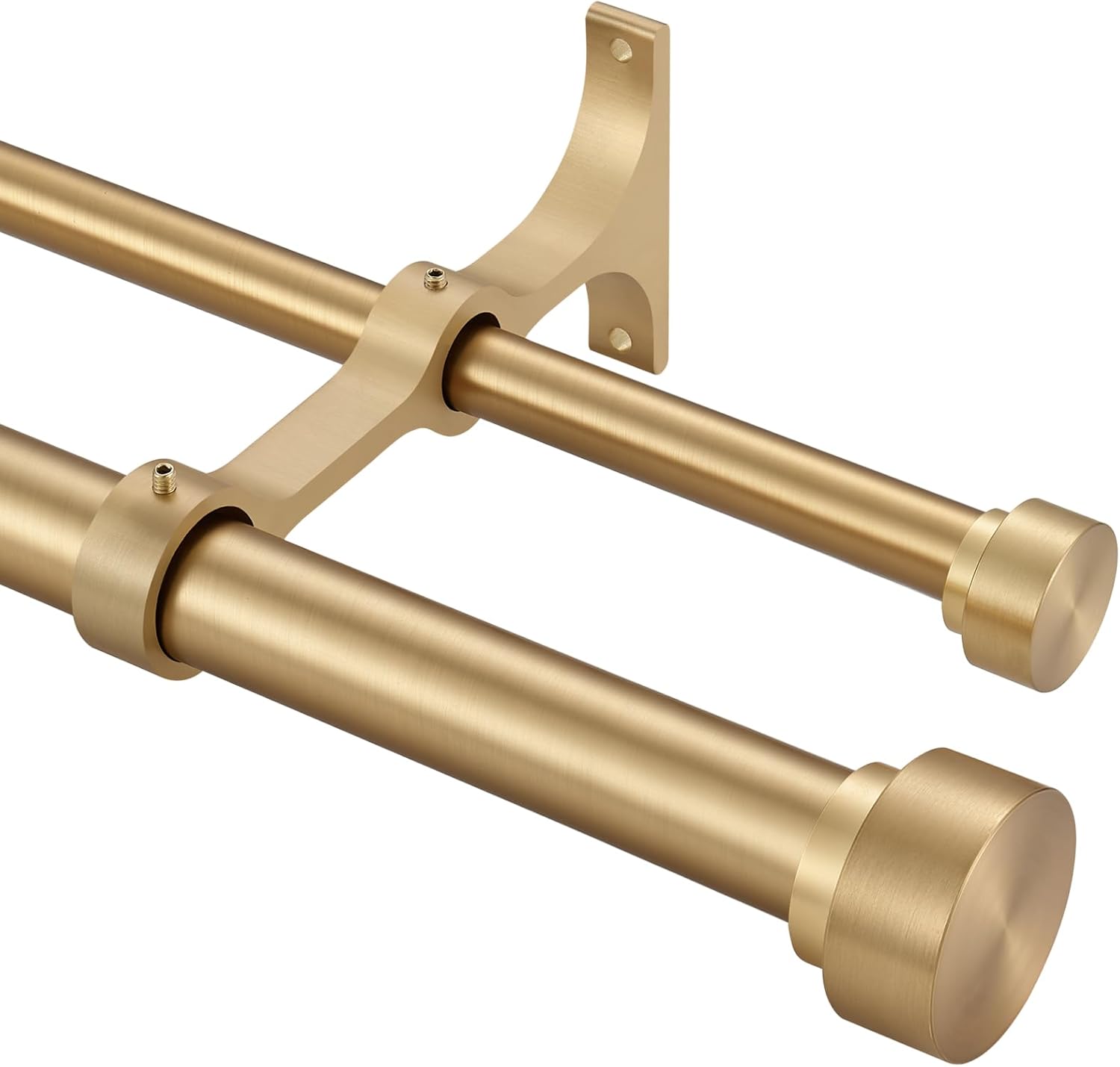 Elevate your window decor with the Kemmie Heavy Duty Double Curtain Rod Set. Designed for both beauty and strength, this set features a 1-inch diameter front rod and a 5/8-inch diameter back rod, both crafted from robust steel with a luxurious warm gold coated finish. The telescoping design effortlessly adjusts from 72 to 144 inches to fit a wide range of standard and wide windows, making installation straightforward and versatile. Perfect for creating elegant, layered looks, use the front rod for sheer curtains and the back rod for blackout drapes, or mix and match to express your personal style. The heavy-duty construction ensures superior support, preventing sagging even with heavier fabrics, while the sleek warm gold finish adds a touch of timeless sophistication to any room—be it your living room, bedroom, or dining area. Key features include all necessary mounting hardware, durable steel brackets, and a user-friendly design that simplifies the hanging process. Experience the perfect blend of form and function; these rods provide a professional, custom-built appearance without the high cost. Transform your space with durable, stylish, and practical window hardware designed for lasting performance and everyday elegance.